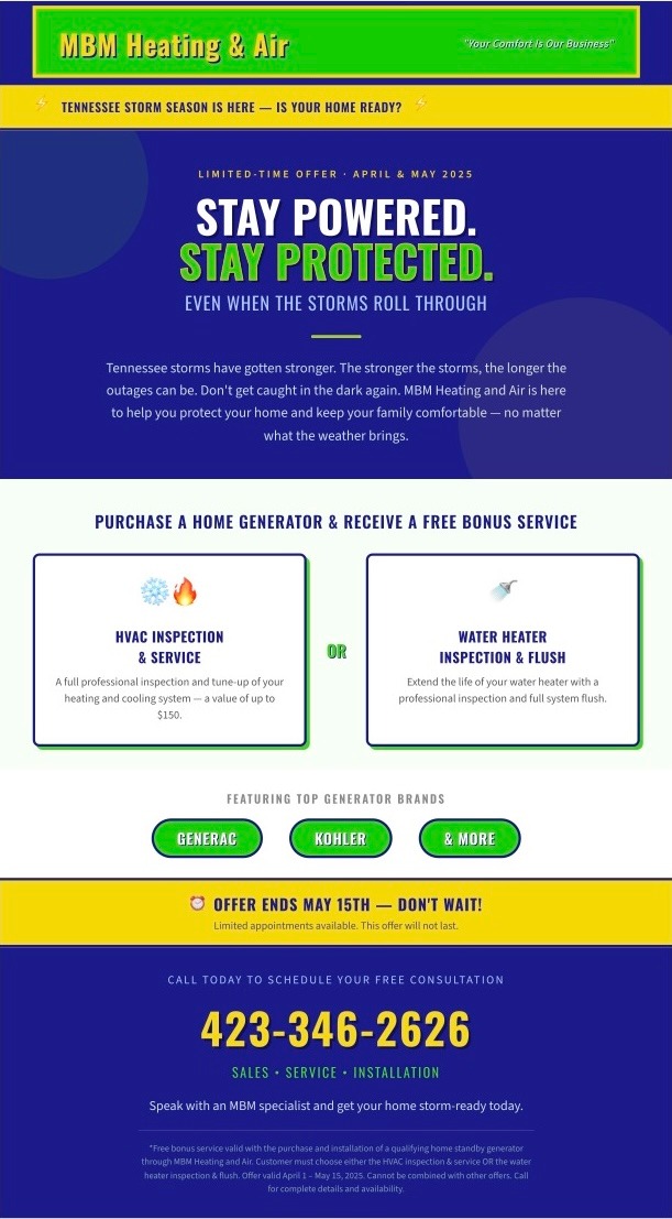 Limited-Time Generator Promotion in Tennessee: Stay Powered During Storm Season